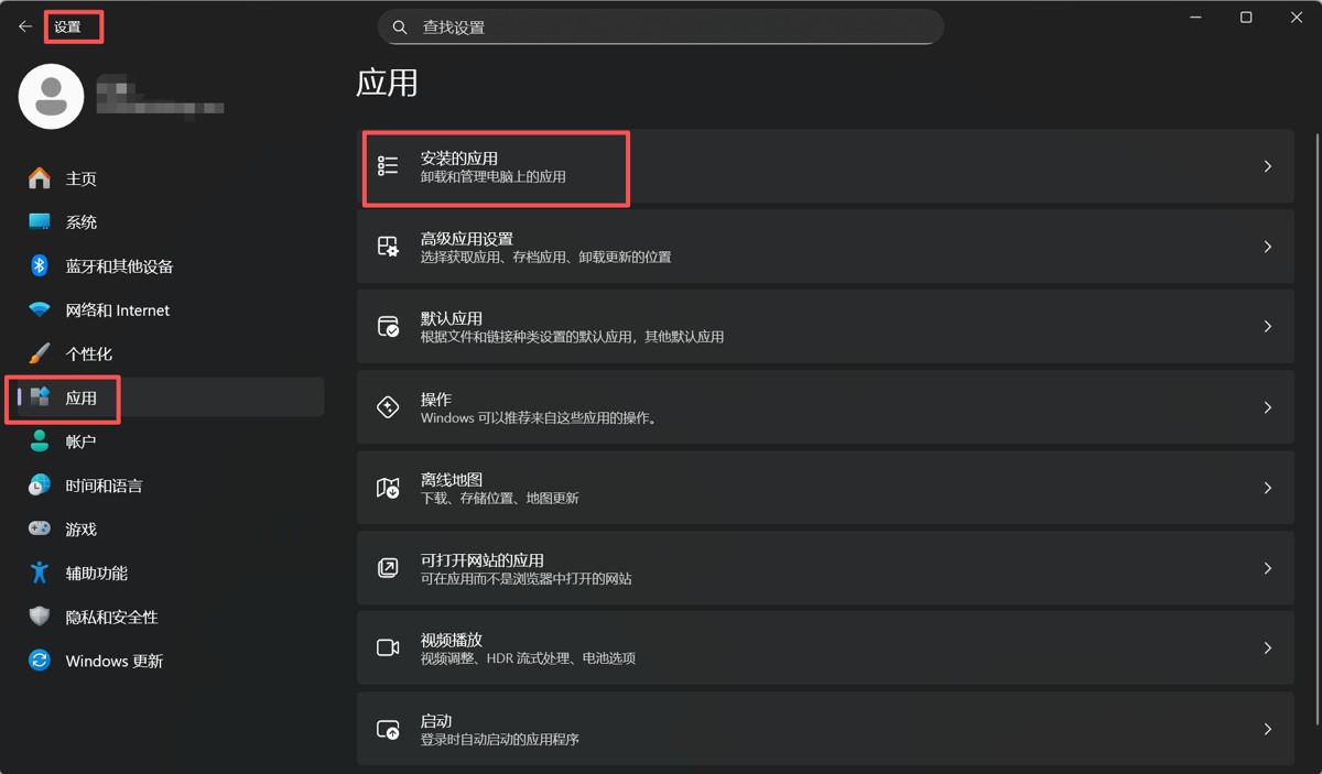 打開設置,點擊應用、安裝的應用。
