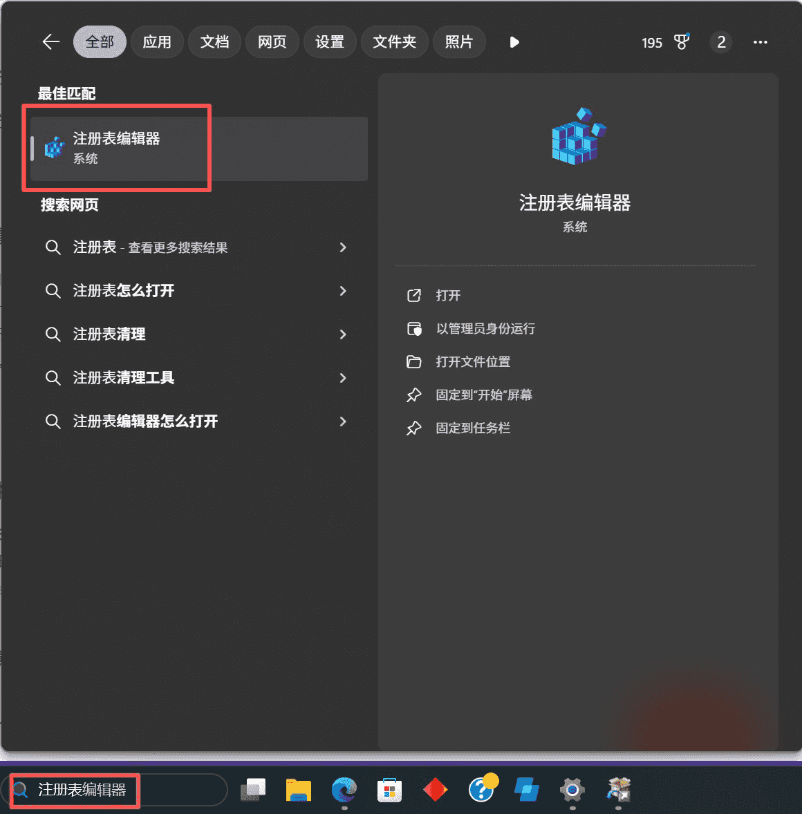 可以通過搜索或者指令的方式打開“注冊表編輯器”。