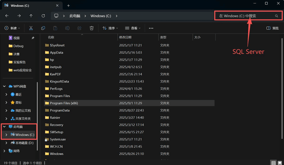 然后在c盤的此路徑下,也找到有關(guān)于SQL Server的文件夾并刪除,此處刪除“Microsoft SQL Server”文件夾。
