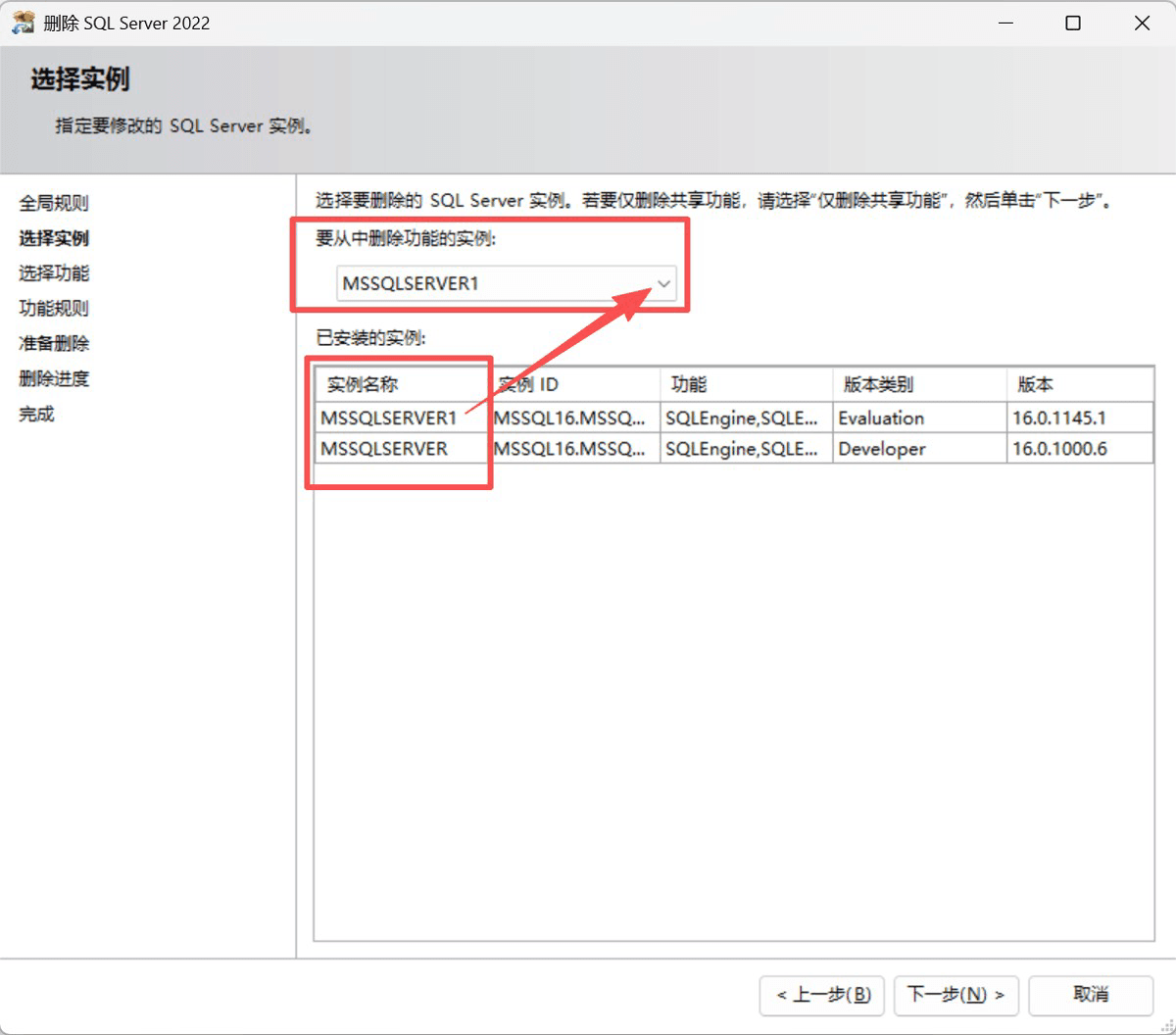 選擇需要刪除的實例,點擊下一步。