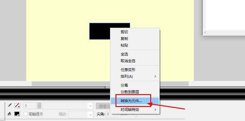 3、使用鼠標(biāo)點(diǎn)擊長(zhǎng)方形,右鍵選擇轉(zhuǎn)換為元件,或使用快捷鍵f8