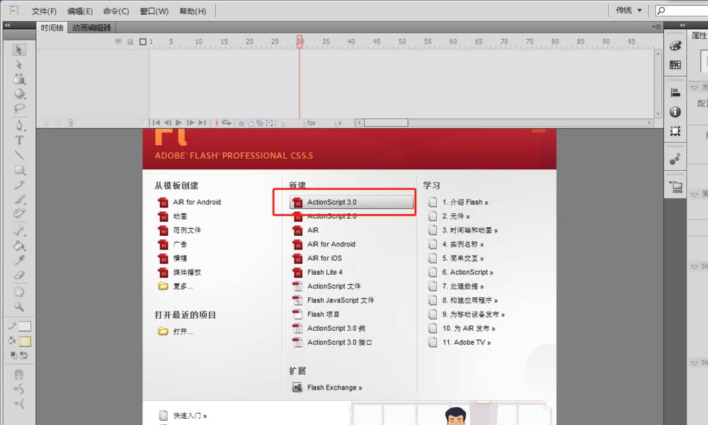 1、雙擊flash圖標打開這個軟件,選擇新建一個flash動畫項目。