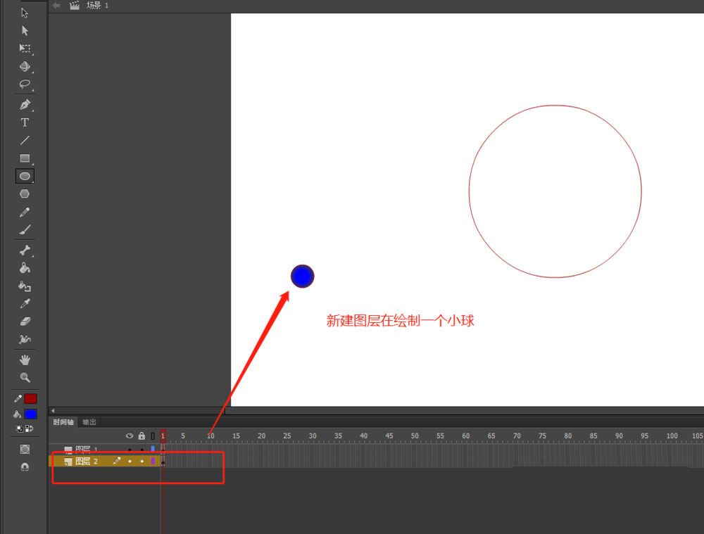 3、在新建一個圖層2,然后在圖層2上在通過橢圓工具來繪制一個小球圖形出來。