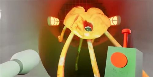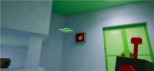 4、用遙控器對準(zhǔn)紅色的按鈕撞擊,然后門就可以打開了,可以前往另一個房間。
