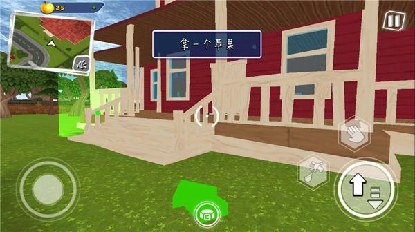 8、根據(jù)提示進(jìn)入圍欄中的房間,點(diǎn)擊獲取蘋果;