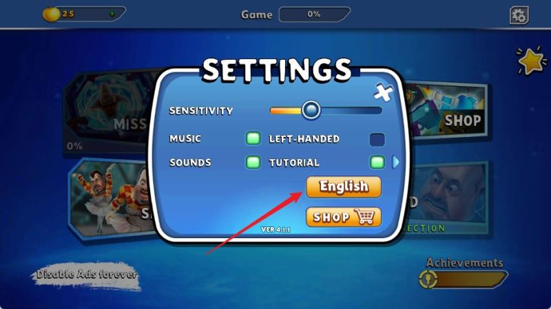 2、在“Settings”設(shè)置界面中,點(diǎn)擊語言選項(xiàng)“English”;