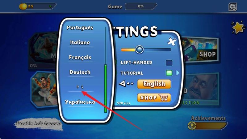3、下滑列表,選擇“中文”即可切換為中文界面。
