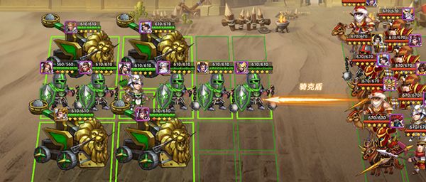 如果對方騎兵和前排較多,可以集中站位,保護(hù)后排,并且使用弓兵對騎兵進(jìn)行克制性攻擊。