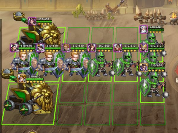 該陣型不僅在攻城戰(zhàn)里適用,在單挑戰(zhàn)斗,以及競技場戰(zhàn)斗中也很實(shí)用:能在一定程度上打贏比你戰(zhàn)力強(qiáng)的正常陣容對手。