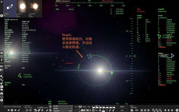 曲速航行結(jié)束后,記得暫停時(shí)間,手動(dòng)切換參照物。這是由于曲速結(jié)束時(shí),飛船軌跡可能會(huì)徑直撞向天體,需要提前做好應(yīng)對、修正穩(wěn)定軌道。