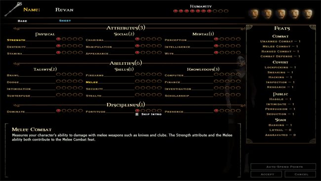 在車卡時基礎(chǔ)界面還可以看到一個選擇角色背景的history選擇,每個氏族都有獨特的可選history,每種都會給予不同的優(yōu)勢與劣勢來給你不同的開局購點,并且其中不少還關(guān)聯(lián)到了vtm本身的lore,具體效果可以自己查看描述,我這里沒法一一贅述。