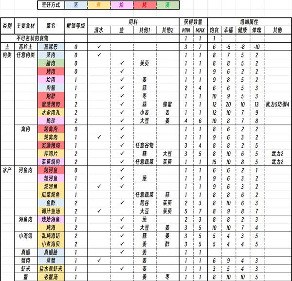 漢塵腐草為螢游戲菜譜一覽