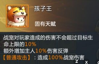 胖小虎也是從鴻蒙尋寶中獲得,擁有比前幾只寵物都要高的基礎(chǔ)戰(zhàn)斗力,也就是說后期他的屬性提升要高于前面的幾只寵物,他的被動技能也是非常實用的,10%的傷害反彈,如果沒有孫小圣的情況下,他一定是首選!