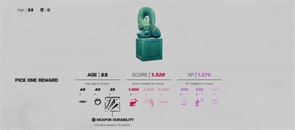 基于年齡的最高神龕獎勵是【武器耐久度】,購買它的條件是年齡不超過25歲,每個周目總共可以購買3次??梢栽黾游淦髂途枚龋ㄊ褂梦淦鞲菀状驖M敵人的架勢條),武器在應(yīng)對大群敵人時非常有效。