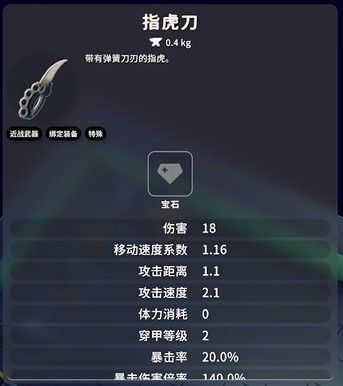 指虎刀也是一個(gè)加移動(dòng)系數(shù)的刀,加0.16啊,跟爪子刀差不多啊,就僅次于爪子刀的這個(gè)跑圖能力啊,但是他攻擊能力是不如爪子刀的