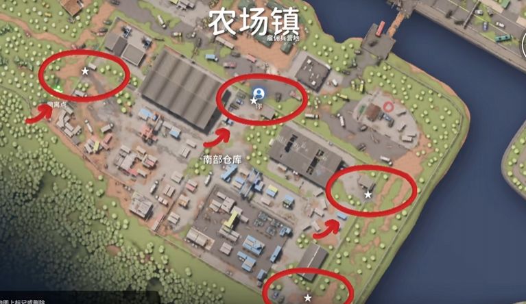農(nóng)場(chǎng)鎮(zhèn)存在2個(gè)超高價(jià)值物資房,需要神秘鑰匙X或者神秘鑰匙O,物資房?jī)?nèi)會(huì)出現(xiàn)如顯卡、Lab實(shí)驗(yàn)室鑰匙卡、金徽章等超高價(jià)值物品。在釣魚碼頭左側(cè)山坡存在一個(gè)NPC商人,售賣武器配件,高級(jí)武器,頂級(jí)子彈,以及神秘鑰匙O、神秘鑰匙X與Lab實(shí)驗(yàn)室鑰匙卡。