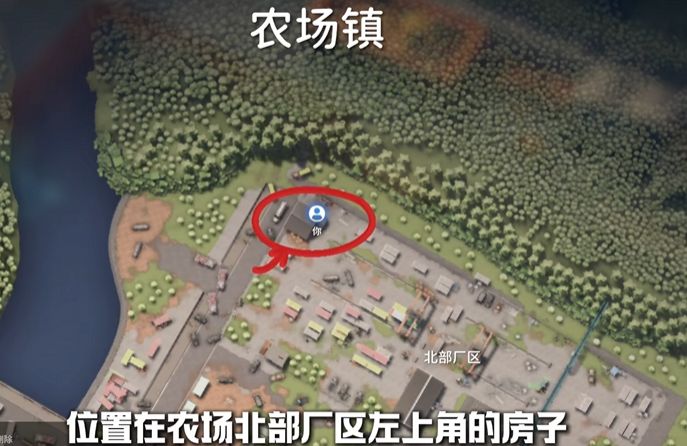 位置農(nóng)場(chǎng)鎮(zhèn)北部廠區(qū)左上角的小屋