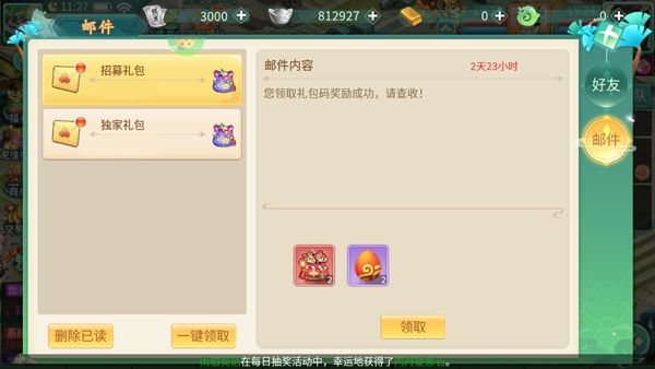 3、禮包兌換成功后在郵件領取