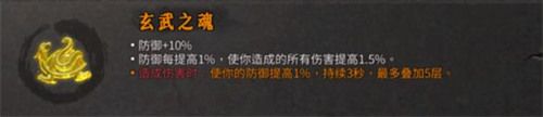 造成傷害時(shí):使你的防御提高1%,持續(xù)3秒,最多疊加5層玄武之魂。