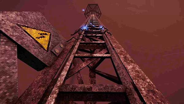 1、整個游戲發(fā)生在一片被茂密森林環(huán)繞的禁區(qū)中。玩家在黃昏時分于塔底開始攀登,此時最后一縷自然光線消逝,機(jī)械照明成為唯一的可見光源。攀登過程中會暴露結(jié)構(gòu)的不同部位——銹蝕的支撐架、斷裂的鋼索,以及仍殘留著舊通訊痕跡的面板。