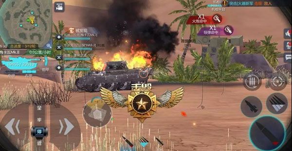 敵人整體實(shí)力并不強(qiáng),直升機(jī)在導(dǎo)彈車(chē)上方基本不用動(dòng),坦克和裝甲車(chē)自行攻擊目標(biāo)即可。