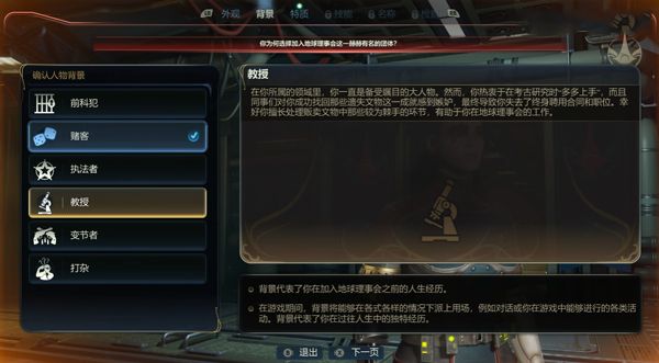 4、然后選擇角色的背景、特質(zhì)、技能,最后取個(gè)名稱;