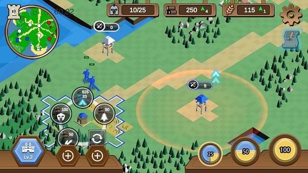 你可以可建造伐木場、農(nóng)田、兵營,獲得木材、糧食、士兵數(shù),木材用于建造升級,糧食用于產(chǎn)出士兵,兵營用于訓(xùn)練士兵,所以這就需要玩家在這三種建筑和資源中相互權(quán)衡,以此達到最優(yōu)的策略方針。