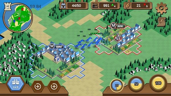 將訓(xùn)練好的士兵從你的城池中派向敵人的城池,你要考慮清楚,如何將適當(dāng)數(shù)量的士兵放在派往適當(dāng)?shù)膽?zhàn)場!消滅敵人并占領(lǐng)他們的城市,搶奪他們的資源吧!
