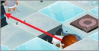 走中間的冰凍道路,落水后將清除掉最初河中的主角石像。