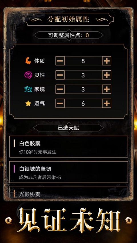 2、不同的屬性可以自由選擇加點,搭配各種各樣的奇異天賦,讓你每次的人生都不重樣,達(dá)成各種成就。