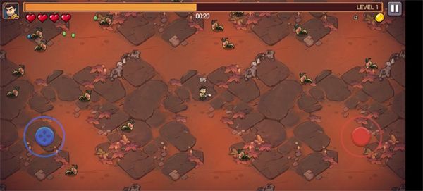 4、進(jìn)入之后左邊藍(lán)色控制角色移動(dòng),右邊紅色是開火移動(dòng)。