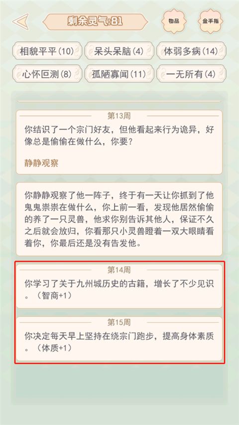 5、選擇完隨機(jī)情節(jié)之后,會(huì)出現(xiàn)相應(yīng)的屬性加成或減少;