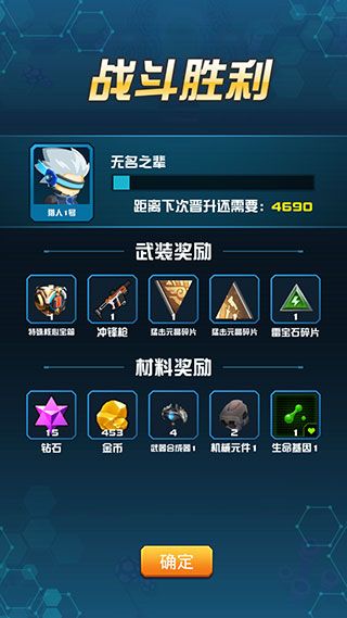 7、勝利后就可以獲得大量的獎(jiǎng)勵(lì)了,其中就包括了武裝獎(jiǎng)勵(lì)和材料獎(jiǎng)勵(lì),還有大量的資源和經(jīng)驗(yàn)。