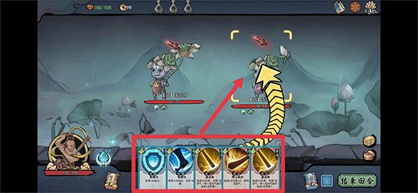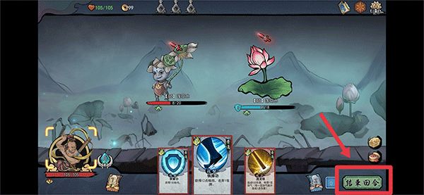 5、當發(fā)力值不足時是無法使用卡牌的,這時玩家需要點擊右下角結(jié)束回合,并在敵人發(fā)起攻擊后進入下一輪的進攻