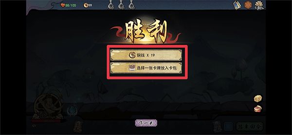 6、戰(zhàn)斗結(jié)束后選擇銅錢獎勵或者卡牌獎勵
