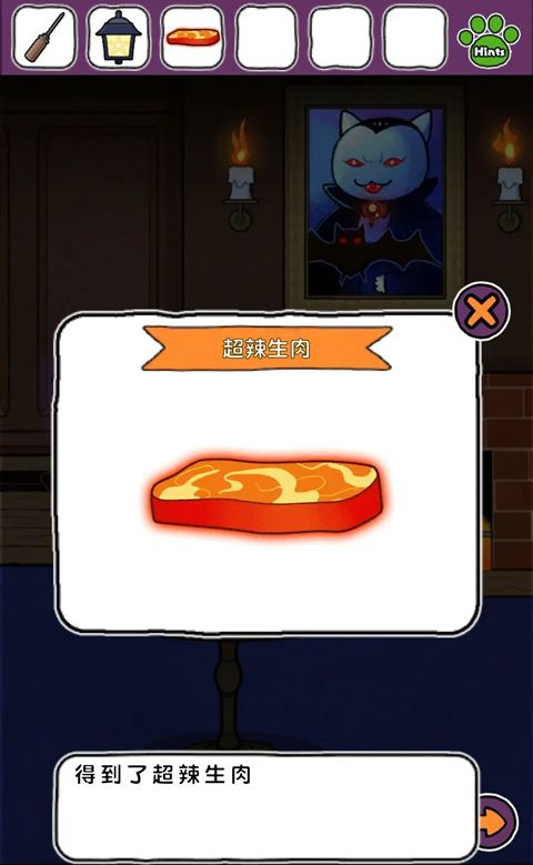 17、對餐桌里的肉使用魔鬼辣椒醬,獲得超辣的肉,把肉給烏鴉,烏鴉飛走。