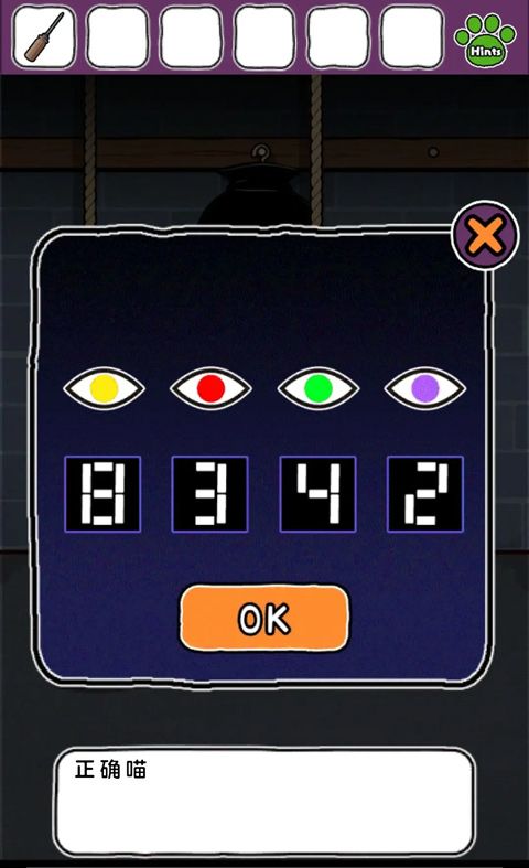 22、前往密室,用小刀割開棕貓身上的繩子,返回密室第一個房間,點擊籠子,輸入8342,打開獲得植物。
