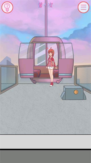 陸續(xù)出現(xiàn)三個(gè)纜車(chē),出現(xiàn)第二個(gè),點(diǎn)擊按鈕,里邊有小熊玩具,點(diǎn)擊拿到針,按按鈕,關(guān)門(mén),等第三個(gè),出現(xiàn)后,里邊有個(gè)胖子,扎破他即可。