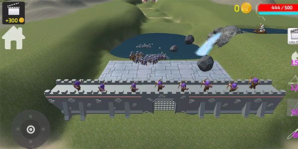 游戲內(nèi)擁有眾多關(guān)卡,難度呈遞增趨勢(shì)。需要玩家注意的一點(diǎn),不同兵種的出戰(zhàn)方式略有差異,如城墻之上只能放置弓箭手,其他像騎兵、步兵則可以在城門(mén)內(nèi)點(diǎn)擊出戰(zhàn)。隊(duì)伍數(shù)量取決于金幣獲取速度,金幣會(huì)隨時(shí)間恢復(fù)并遞增,合理使用金幣,爭(zhēng)取用最少的資源,阻止敵人進(jìn)攻。另外,游戲內(nèi)有不同技能可以使用,在支援抵達(dá)前,請(qǐng)控制好城堡血量,將血量降低為0時(shí),則挑戰(zhàn)失??!