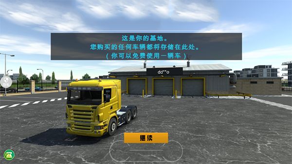 3、這是你的基地,您購買的任何車輛都將存儲在此處,點(diǎn)擊“繼續(xù)”。