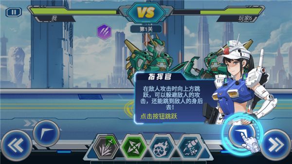 8、點(diǎn)擊“跳躍”按鈕,可以在敵人攻擊的時(shí)候向上方跳躍,可以躲避敵人的攻擊,并且還能跳到敵人的身后。