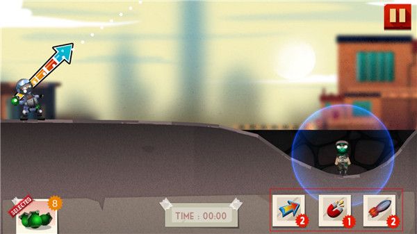 1、在你實(shí)在想不到怎么通關(guān)的時(shí)候,你可以選擇導(dǎo)彈在摧毀一切,但是會(huì)有使用限制。