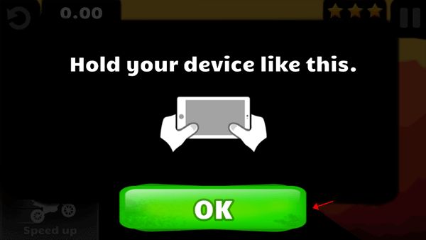 4、這時候頁面又彈出了一個提示,需要按照它給的圖片來拿住手機(jī)進(jìn)行游戲,點(diǎn)擊“OK”。