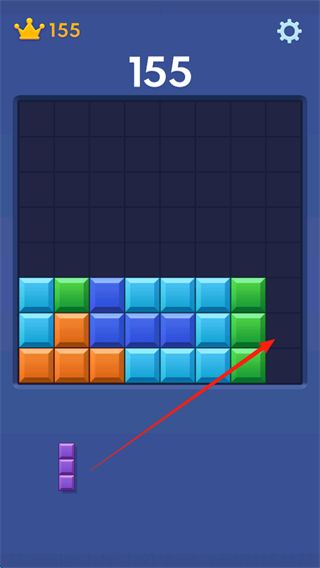 1、將屏幕下方的方塊移入大方塊中的空缺處,完成上下左右的整行列填充,就可以消除了。