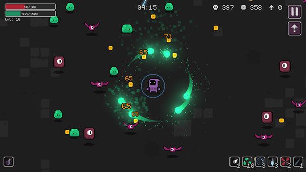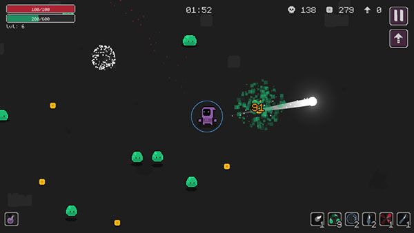 3、當(dāng)我們接近蹦跳的怪物時會自動攻擊,不過波數(shù)與冷卻時間是控制的,所以在冷卻時要注意躲避他們;