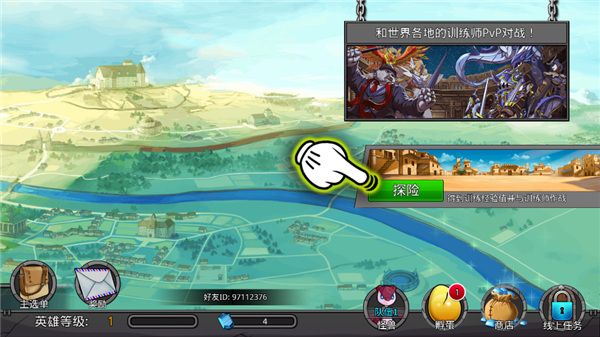 8、然后再返回首頁,點擊探險,這個玩法能夠讓訓練師得到訓練經(jīng)驗值也可以與訓練師作戰(zhàn);