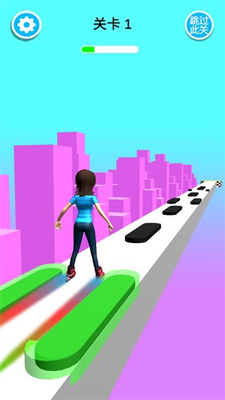 2、指尖操控你的角色來一場刺激的天空輪滑,游戲的賽道制作的相當(dāng)?shù)拇碳ぁ?/p>