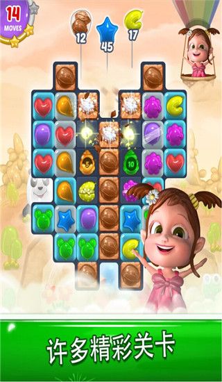 《氣球天堂 Balloon Paradise》是一款經(jīng)典三消游戲。貝拉在一次神奇的冒險(xiǎn)中來到了一個(gè)未知的世界,這座城市完全由氣球構(gòu)成,隱藏在天空的云朵之中,而一股大風(fēng)把所有的顏色都弄亂了,我們需要和貝拉一起把秩序恢復(fù)。這是一款精彩的云上消除游戲,你的任務(wù)是交換和搭配這些閃亮的氣球,并使用神奇的道具拯救天空之城。準(zhǔn)備好消氣球了嗎?快快加入我們!