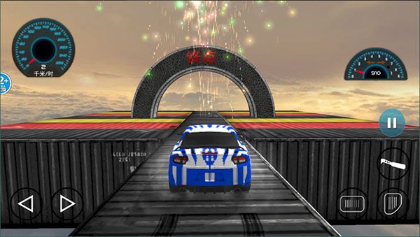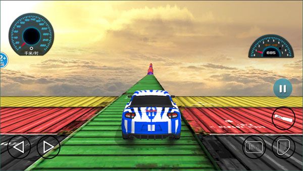 2、游戲的玩法也非常簡單,我們需要操控汽車在空中架起的賽道上前進(jìn)到達(dá)終點(diǎn),通過左側(cè)的按鈕控制汽車的左右轉(zhuǎn)向,右側(cè)的按鈕分別用來控制汽車的前進(jìn)、后退和剎車;