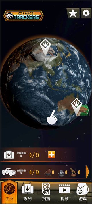 1、下載安裝好侏羅紀世界真相中文版之后,進入游戲主界面,點擊地球上的恐龍圖標;